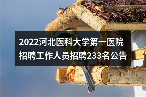 根据《河北省事业单位公开招聘工作人员暂行办法》,经省人力资源和社会保障厅批准,河北医科大学第一医院2022年拟面向社会公开招聘工作人员233名。现将有关事项公告如下: